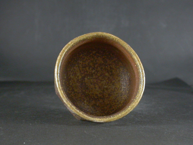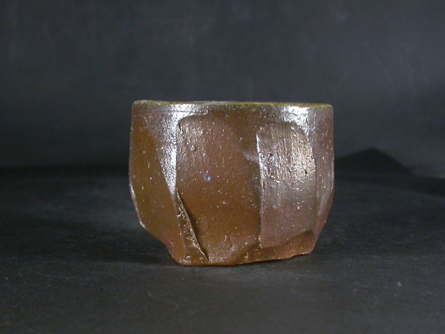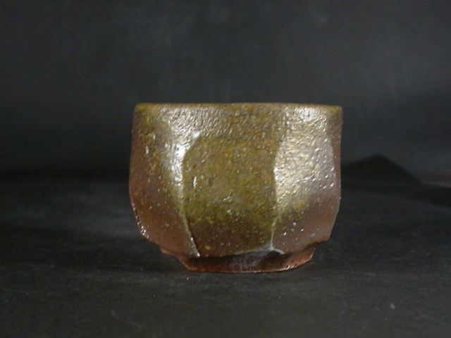 昭和19年備前市生まれ。趣味で備前焼を始め現在の備前焼に飽きたらず窯を築いて作陶生活にはいる。以来20年現在では山の中で野鳥の写真を写しながら作陶三昧の生活を送っています。ゆっくりろくろを回し手捻り風の作品や独特の雰囲気の面取の作品を作り、人工的な手法を嫌い割り木のみで炊き上げ独特の色合いの作品を作ります。このぐい呑は今回窯出しの最新作で面取り・鎬を入れた雰囲気のある作りに、焼けは良く焼き締まった地肌に黄・焦げ茶のゴマが掛かり良い雰囲気の作品となっています。高さ約5.7センチ、径約7センチ。栞付き。 送料は地域別送料です。 別注品を除く5,000円以上のお買上げで送料500円。 別注品を除く10,000円以上のお買上げで送料無料にさせていただきます。 ※離島にお住まいの方は別途ご連絡いたします。