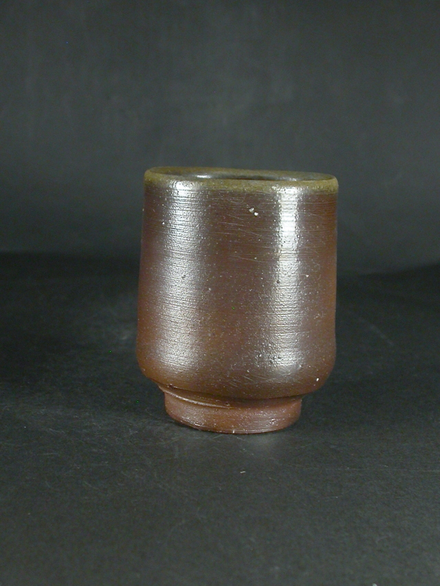 昭和19年備前市生まれ。趣味で備前焼を始め現在の備前焼に飽きたらず窯を築いて作陶生活にはいる。以来20年現在では山の中で野鳥の写真を写しながら作陶三昧の生活を送っています。ゆっくりろくろを回し手捻り風の作品や独特の雰囲気の面取の作品を作り、人工的な手法を嫌い割り木のみで炊き上げ独特の色合いの作品を作ります。この湯吞は今回窯出しの最新作で使い道の多い大きさの作りに、焼けは良く焼き締まった地肌に黄・青。焦げ茶のゴマが掛かり良い雰囲気の作品となっています。高さ約9センチ、径約7.3センチ。栞付き。送料は地域別送料です。別注品を除く5,000円以上のお買上げで送料500円。 別注品を除く10,000円以上のお買上げで送料無料にさせていただきます。 ※離島にお住まいの方は別途ご連絡いたします。