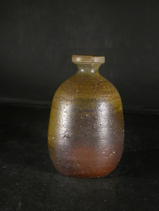 昭和19年備前市生まれ。趣味で備前焼を始め現在の備前焼に飽きたらず窯を築いて作陶生活にはいる。以来20年現在では山の中で野鳥の写真を写しながら作陶三昧の生活を送っています。ゆっくりろくろを回し手捻り風の作品や独特の雰囲気の面取の作品を作り、人工的な手法を嫌い割り木のみで炊き上げ独特の色合いの作品を作ります。この徳利は今回窯出しの最新作で雰囲気のある作りに、焼けは良く焼き締まった地肌に黄・青・焦げ茶のゴマがたっぷりと掛かり良い雰囲気の作品となっています。高さ約12.5センチセンチ、径約8センチ。栞付き。 送料は地域別送料です。 別注品を除く5,000円以上のお買上げで送料500円。 別注品を除く10,000円以上のお買上げで送料無料にさせていただきます。 ※離島にお住まいの方は別途ご連絡いたします。