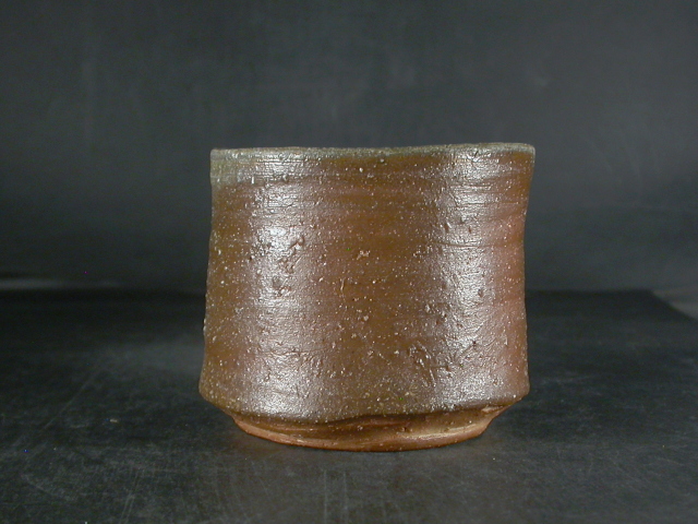昭和19年備前市生まれ。趣味で備前焼を始め現在の備前焼に飽きたらず窯を築いて作陶生活にはいる。以来20年現在では山の中で野鳥の写真を写しながら作陶三昧の生活を送っています。ゆっくりろくろを回し手捻り風の作品や独特の雰囲気の面取の作品を作り、人工的な手法を嫌い割り木のみで炊き上げ独特の色合いの作品を作ります。このカップは今回窯出しの最新作で焼酎他使い道の多い大きさで雰囲気のある作りに、焼けは良く焼き締まった地肌に黄・焦げ茶のゴマが掛かり良い雰囲気の作品となっています。口回りに軽いカセゴマの剝げが有ります。高さ約7.7センチ、径約9.3センチ。栞付き。送料は地域別送料です。別注品を除く5,000円以上のお買上げで送料500円。 別注品を除く10,000円以上のお買上げで送料無料にさせていただきます。 ※離島にお住まいの方は別途ご連絡いたします。