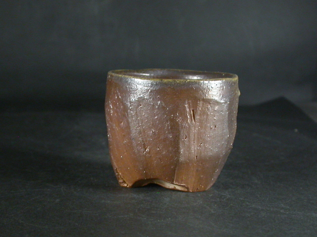 昭和19年備前市生まれ。趣味で備前焼を始め現在の備前焼に飽きたらず窯を築いて作陶生活にはいる。以来20年現在では山の中で野鳥の写真を写しながら作陶三昧の生活を送っています。ゆっくりろくろを回し手捻り風の作品や独特の雰囲気の面取の作品を作り、人工的な手法を嫌い割り木のみで炊き上げ独特の色合いの作品を作ります。このぐい吞は今回窯出しの最新作で面取り・鎬を入れた雰囲気のある作りに、焼けは良く焼き締まった地肌に黄・焦げ茶のゴマが掛かり良い雰囲の作品と成っています。高さ約6センチ、径約7センチ。栞付き。送料は地域別送料です。別注品を除く5,000円以上のお買上げで送料500円。 別注品を除く10,000円以上のお買上げで送料無料にさせていただきます。 ※離島にお住まいの方は別途ご連絡いたします。