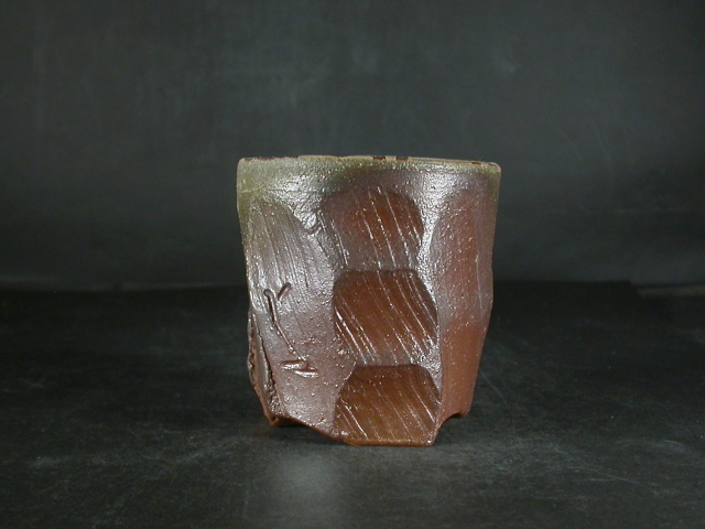 昭和19年備前市生まれ。趣味で備前焼を始め現在の備前焼に飽きたらず窯を築いて作陶生活にはいる。以来20年現在では山の中で野鳥の写真を写しながら作陶三昧の生活を送っています。ゆっくりろくろを回し手捻り風の作品や独特の雰囲気の面取の作品を作り、人工的な手法を嫌い割り木のみで炊き上げ独特の色合いの作品を作ります。このカップは今回窯出しの最新作で面取り・鎬を入れた雰囲気のある作りに、焼けは良く焼き締まった地肌に黄・焦げ茶のゴマがたっぷりと掛かり良い雰囲気の作品となっています。カセゴマの剝げが有ります。高さ約8センチ、径約8センチ。栞付き。送料は地域別送料です。別注品を除く5,000円以上のお買上げで送料500円。 別注品を除く10,000円以上のお買上げで送料無料にさせていただきます。 ※離島にお住まいの方は別途ご連絡いたします。