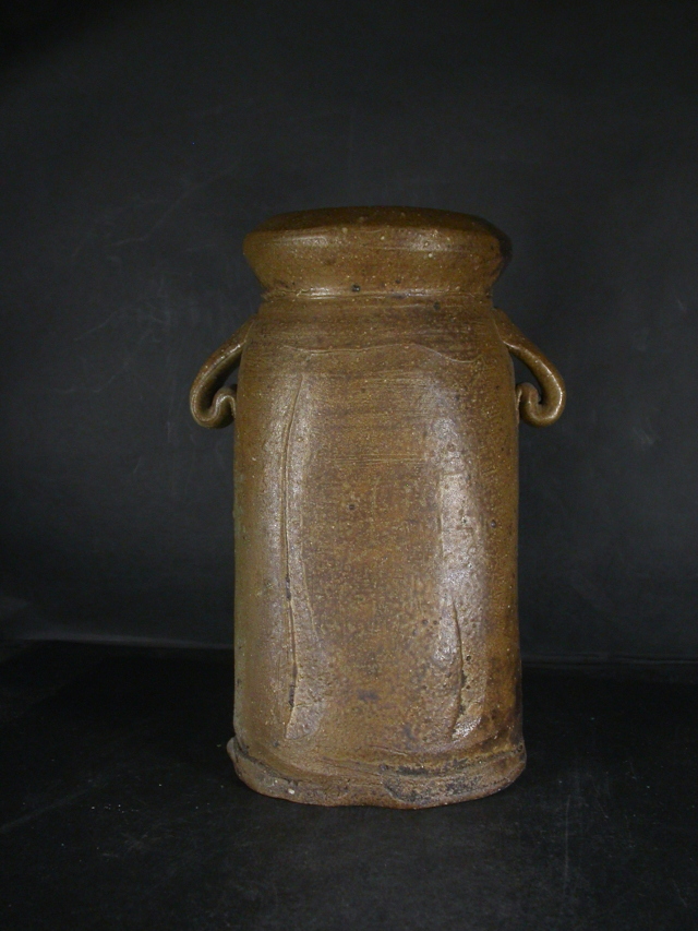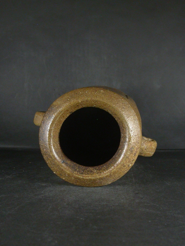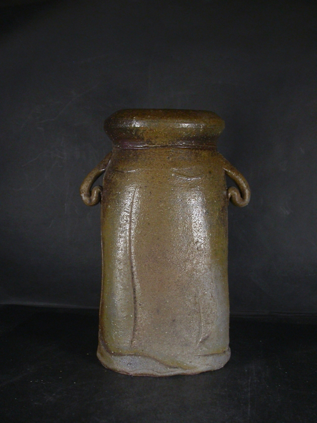 昭和19年備前市生まれ。趣味で備前焼を始め現在の備前焼に飽きたらず窯を築いて作陶生活にはいる。以来20年現在では山の中で野鳥の写真を写しながら作陶三昧の生活を送っています。ゆっくりろくろを回し手捻り風の作品や独特の雰囲気の面取の作品を作り、人工的な手法を嫌い割り木のみで炊き上げ独特の色合いの作品を作ります。この花入は今回窯出しの最新作で雰囲気のある作りに、焼けは良く焼き締まった地肌に青・黄・焦げ茶のゴマがたっぷりと掛かり良い雰囲気の作品となっています。少し座りが悪いです。高さ約24.3センチ、径約13.8センチ。栞付き。送料は地域別送料です。別注品を除く5,000円以上のお買上げで送料500円。 別注品を除く10,000円以上のお買上げで送料無料にさせていただきます。