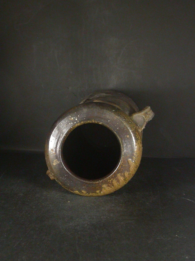 昭和19年備前市生まれ。趣味で備前焼を始め現在の備前焼に飽きたらず窯を築いて作陶生活にはいる。以来20年現在では山の中で野鳥の写真を写しながら作陶三昧の生活を送っています。ゆっくりろくろを回し手捻り風の作品や独特の雰囲気の面取の作品を作り、人工的な手法を嫌い割り木のみで炊き上げ独特の色合いの作品を作ります。この花入は雰囲気のある作りに、焼けは良く焼き締まった地肌に青・黄・焦げ茶・焦げゴマがたっぷりと掛かり玉垂れと相まって良い雰囲気の作品となっています。引っ付き痕が有ります。高さ約25.5センチ、径約13.5センチ。栞付き。 送料は地域別送料です。 別注品を除く5,000円以上のお買上げで送料500円。 別注品を除く10,000円以上のお買上げで送料無料にさせていただきます。 ※離島にお住まいの方は別途ご連絡いたします。