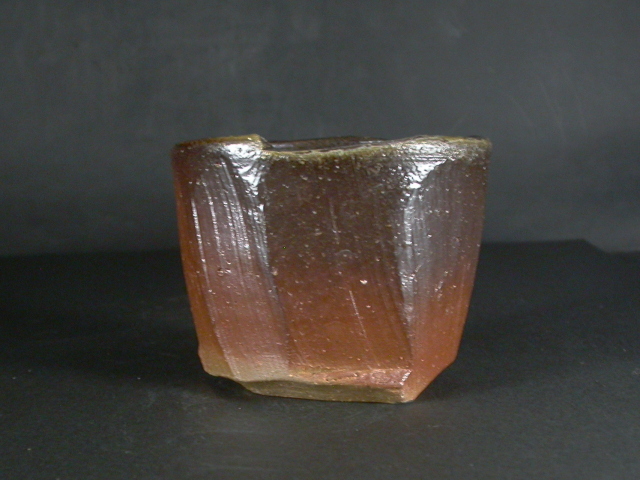 昭和19年備前市生まれ。趣味で備前焼を始め現在の備前焼に飽きたらず窯を築いて作陶生活にはいる。以来20年現在では山の中で野鳥の写真を写しながら作陶三昧の生活を送っています。ゆっくりろくろを回し手捻り風の作品や独特の雰囲気の面取の作品を作り、人工的な手法を嫌い割り木のみで炊き上げ独特の色合いの作品を作ります。このカップは今回窯出しの最新作で焼酎他使い道の多い大きさで面取り・鎬を入れた雰囲気のある作りに、焼けは良く焼き締まった地肌に黄・焦げ茶のゴマが掛かり良い雰囲気の作品となっています。高さ約7.5センチ、径約9.5センチ。栞付き。送料は地域別送料です。別注品を除く5,000円以上のお買上げで送料500円。 別注品を除く10,000円以上のお買上げで送料無料にさせていただきます。 ※離島にお住まいの方は別途ご連絡いたします。