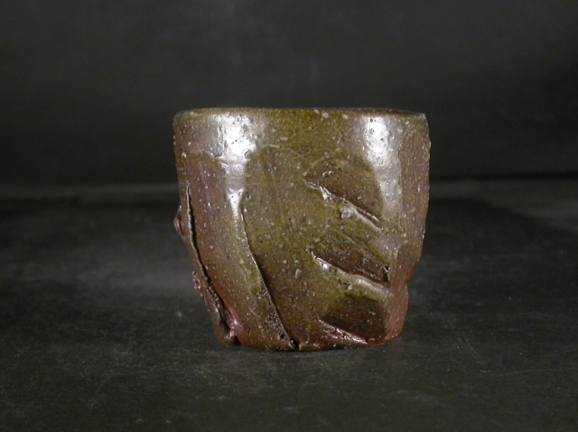昭和19年備前市生まれ。趣味で備前焼を始め現在の備前焼に飽きたらず窯を築いて作陶生活にはいる。以来20年現在では山の中で野鳥の写真を写しながら作陶三昧の生活を送っています。ゆっくりろくろを回し手捻り風の作品や独特の雰囲気の面取の作品を作り、人工的な手法を嫌い割り木のみで炊き上げ独特の色合いの作品を作ります。このぐい呑は今回窯出しの最新作で面取り・鎬を入れた雰囲気のある作りに、焼けは良く焼き締まった地肌に黄・焦げ茶のゴマが掛かり良い雰囲気の作品となっています。高さ約6センチ、径約6.8センチ。栞付き。 送料は地域別送料です。 別注品を除く5,000円以上のお買上げで送料500円。 別注品を除く10,000円以上のお買上げで送料無料にさせていただきます。 ※離島にお住まいの方は別途ご連絡いたします。