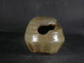 昭和19年備前市生まれ。趣味で備前焼を始め現在の備前焼に飽きたらず窯を築いて作陶生活にはいる。以来20年現在では山の中で野鳥の写真を写しながら作陶三昧の生活を送っています。ゆっくりろくろを回し手捻り風の作品や独特の雰囲気の面取の作品を作り、人工的な手法を嫌い割り木のみで炊き上げ独特の色合いの作品を作ります。この掛け花入は今回窯出しの最新作で雰囲気の有る作りに、焼けは良く焼き締まった地肌に黄・焦げ茶のゴマがたっぷりと掛かり良い雰囲気の作品となっています。陶印漏れです。高さ約8.5センチ、径約9.5センチ。栞付き。送料は地域別送料です。別注品を除く5,000円以上のお買上げで送料500円。 別注品を除く10,000円以上のお買上げで送料無料にさせていただきます。 ※離島にお住まいの方は別途ご連絡いたします。