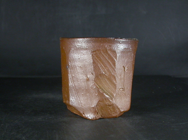 昭和19年備前市生まれ。趣味で備前焼を始め現在の備前焼に飽きたらず窯を築いて作陶生活にはいる。以来20年現在では山の中で野鳥の写真を写しながら作陶三昧の生活を送っています。ゆっくりろくろを回し手捻り風の作品や独特の雰囲気の面取の作品を作り、人工的な手法を嫌い割り木のみで炊き上げ独特の色合いの作品を作ります。このカップは今回窯出しの最新作で焼酎他使い道の多い大きさで面取りを入れた雰囲気のある作りに、焼けは良く焼き締まった地肌に黄・焦げ茶のゴマが軽く掛かり良い雰囲気の作品となっています。高さ約7.8センチ、径約8センチ。栞付き。送料は地域別送料です。別注品を除く5,000円以上のお買上げで送料500円。 別注品を除く10,000円以上のお買上げで送料無料にさせていただきます。 ※離島にお住まいの方は別途ご連絡いたします。