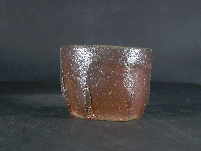 昭和19年備前市生まれ。趣味で備前焼を始め現在の備前焼に飽きたらず窯を築いて作陶生活にはいる。以来20年現在では山の中で野鳥の写真を写しながら作陶三昧の生活を送っています。ゆっくりろくろを回し手捻り風の作品や独特の雰囲気の面取の作品を作り、人工的な手法を嫌い割り木のみで炊き上げ独特の色合いの作品を作ります。このぐい呑は今回窯出しの最新作で雰囲気のある作りに、焼けは良く焼き締まった地肌にカセゴマが掛かり良い雰囲気の作品となっています。カセゴマの剝げが有ります。高さ約5.5センチ、径約7センチ。栞付き。送料は地域別送料です。別注品を除く5,000円以上のお買上げで送料500円。 別注品を除く10,000円以上のお買上げで送料無料にさせていただきます。 ※離島にお住まいの方は別途ご連絡いたします。