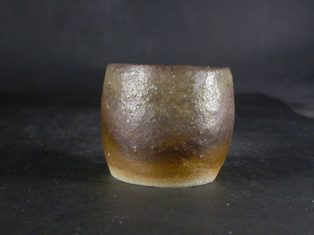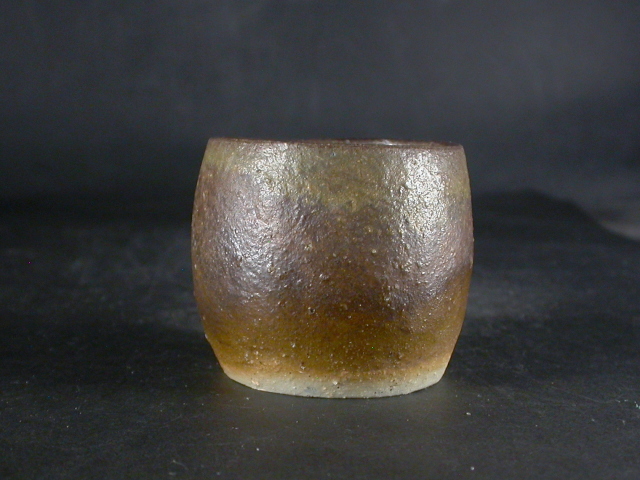 昭和25年岡山県生まれ。備前陶芸センター終了後窯を築いて独立。日本伝統工芸展他入賞。備前焼伝統工芸士。このぐい吞は淡い自然練込土を使った雰囲気の有る作りに、焼けは良く焼き締まった地肌に黄・焦げ茶のゴマがたっぷりと掛かり良い雰囲気の作品だと思います。カセゴマの剝げが有ります。内面に軽いぶくが有ります。高さ約5.5センチ、径約6.5センチ。送料は地域別送料です。別注品を除く5,000円以上のお買上げで送料500円。 別注品を除く10,000円以上のお買上げで送料無料にさせていただきます。 ※離島にお住まいの方は別途ご連絡いたします。