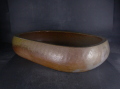 昭和15年岡山市生まれ。岡山県無形文化財二代大饗仁堂の次女と結婚。義父に師事。義父の没後窯を継いで独立。小振りな細工物を得意とし宝瓶では特に人気が有ります。この楕円鉢・水盤はかなり大振りで雰囲気のある作りに、焼けは良く焼き締まった地肌に桟切と黄・焦げ茶のゴマが掛かり牡丹餅・緋襷と相いまって良い雰囲気の作品となっています。高さ約9センチ、幅約44センチ、奥行き約27センチ。送料は地域別送料です。別注品を除く5,000円以上のお買上げで送料500円。 別注品を除く10,000円以上のお買上げで送料無料にさせていただきます。 ※離島にお住まいの方は別途ご連絡いたします。