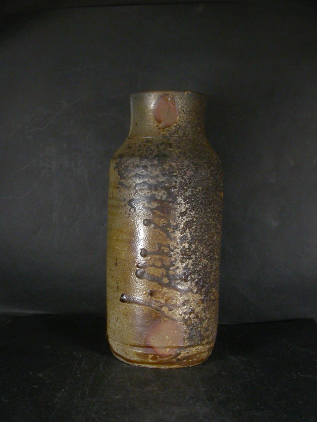 昭和17年兵庫県生まれ。祖父の代から丹波焼き陶工の家系。南燦窯で人間国宝藤原雄の指導を受ける。昭和51年に窯を築いて独立。日本伝統工芸展他入賞多数。日本工芸会正会員。この花入は雰囲気のある作りに、焼けは転がして焼かれ良く焼き締まった地肌に黄・青・焦げ茶・焦げのゴマがたっぷりと掛かり豪快な玉垂れと相まって良い雰囲気の作品となっています。共箱に少し自然の焼けが有ります。高さ約27センチ、径約12センチ。共箱・共布付き。送料は地域別送料です。別注品を除く5,000円以上のお買上げで送料500円。 別注品を除く10,000円以上のお買上げで送料無料にさせていただきます。 ※離島にお住まいの方は別途ご連絡いたします。