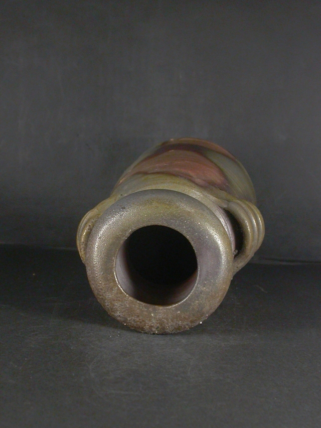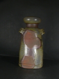昭和6年備前市生まれ。備前焼作家原田陶月に師事後窯を築いて独立。日本伝統工芸展他入賞。この花入は雰囲気の有る作りに、焼けは良く焼き締まった地肌に青・黄・焦げ茶・焦げのゴマゴマがたっぷりと掛かり緋色の抜けと相まって良い雰囲気の作品だと思います。共箱に少し自然の焼けが有ります。高さ約24.5センチ、径約12.5センチ。共箱・共布・栞付き。送料は地域別送料です。別注品を除く5,000円以上のお買上げで送料500円。 別注品を除く10,000円以上のお買上げで送料無料にさせていただきます。 ※離島にお住まいの方は別途ご連絡いたします。