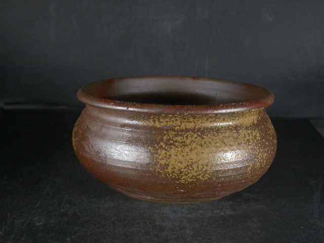 大正2年に木村総本家から独立し創業。日用品から置物まで幅広く作ります。この建水は花器としても良い大きさの作りに焼けは良く焼き締まった地肌に黄・焦げ茶のゴマが掛かり良い雰囲気の作品となっています。高さ8センチ、径約16.5センチ。送料は地域別送料です。別注品を除く5,000円以上のお買上げで送料500円。 別注品を除く10,000円以上のお買上げで送料無料にさせていただきます。 ※離島にお住まいの方は別途ご連絡いたします。