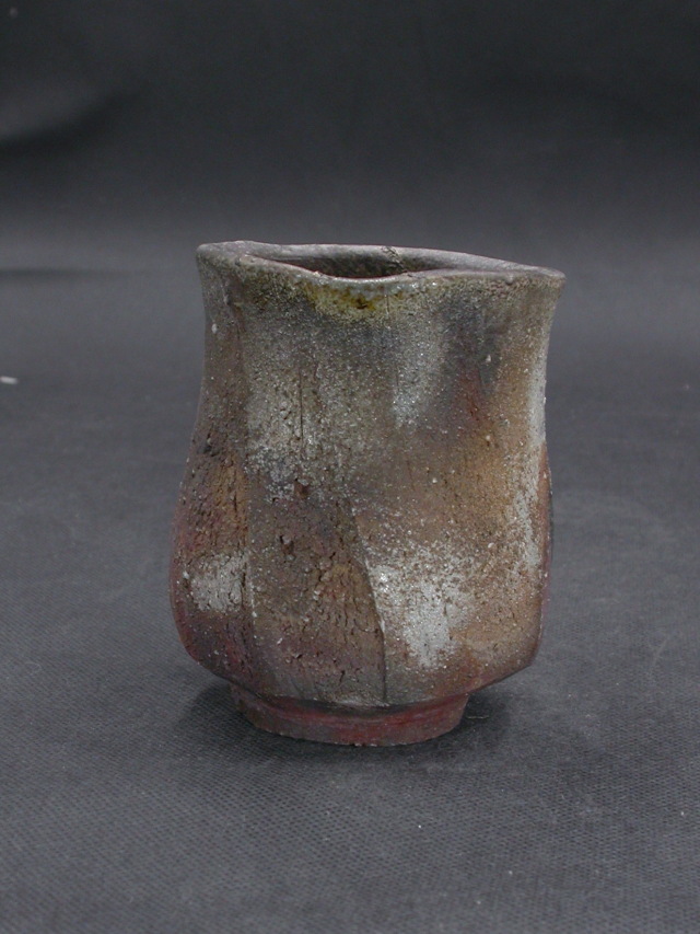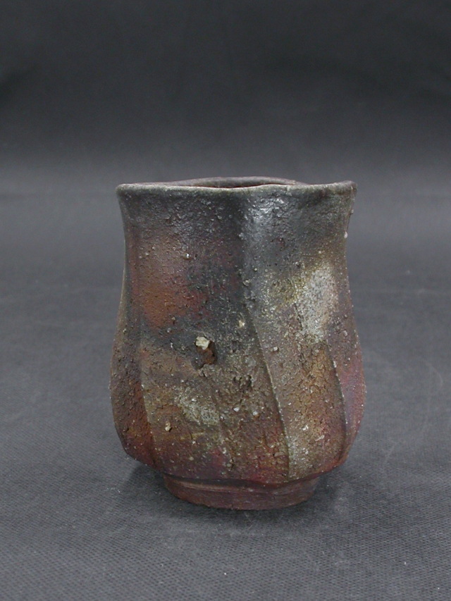 昭和48年埼玉県生まれ。備前陶芸センター修了。備前市無形文化財川端文男に師事後窯を築いて独立。日本伝統工芸展他入賞多数。日本工芸会正会員。この湯呑は雰囲気のある作りに、焼けは良く焼き締まった地肌に桟切と黄・焦げ茶のゴマがたっぷりと掛かり良い雰囲気の作品となっています。石嚙みが有ります。高さ約9.3センチ、径約8.2センチ。送料は地域別送料です。別注品を除く5,000円以上のお買上げで送料500円。 別注品を除く10,000円以上のお買上げで送料無料にさせていただきます。 ※離島にお住まいの方は別途ご連絡いたします。
