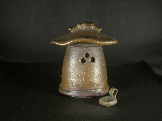 昭和26年岡山県生まれ。備前焼に惹かれ備前陶芸センター卒業後人間国宝山本陶秀・岡山県無形文化財山本雄一親子に師事。県展他入賞。陶秀の陶技・焼成を良く受け継ぎ陶秀譲りのろくろ技術と紐造り・面取等多彩な造形で人気があります。この線香立・香炉は今回窯出しの最新作で雰囲気のある作りに、焼けは良く焼き締まった地肌に金彩と黄・焦げ茶のゴマがたっぶりと掛かり良い雰囲気の作品となっています。高さ約13センチ、屋根の径約11.5センチ角。栞付き。送料は地域別送料です。別注品を除く5,000円以上のお買上げで送料500円。 別注品を除く10,000円以上のお買上げで送料無料にさせていただきます。 ※離島にお住まいの方は別途ご連絡いたします。