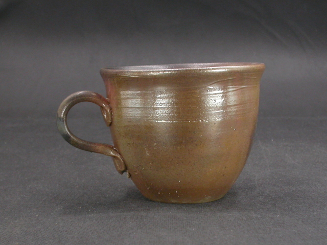 昭和26年岡山県生まれ。備前焼に惹かれ備前陶芸センター卒業後人間国宝山本陶秀・岡山県無形文化財山本雄一親子に師事。県展他入賞。陶秀の陶技・焼成を良く受け継ぎ陶秀譲りのろくろ技術と紐造り・面取等多彩な造形で人気があります。このカップは今回窯出しの最新作で少し重めですが使い道の多い大きさの作りに、焼けは良く焼き締まった地肌に鮮やかな金彩と焦げ茶のゴマがたっぶりと掛かり良い雰囲気の作品となっています。高さ約7.5センチ、径約9.5センチ、手までの幅約12センチ。栞付き。送料は地域別送料です。別注品を除く5,000円以上のお買上げで送料500円。 別注品を除く10,000円以上のお買上げで送料無料にさせていただきます。 ※離島にお住まいの方は別途ご連絡いたします。