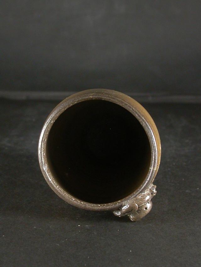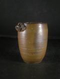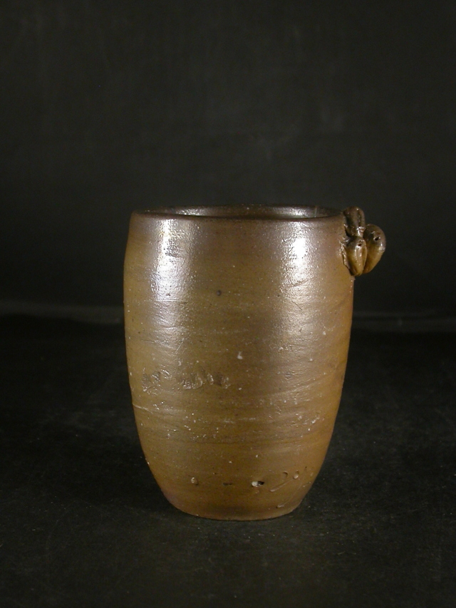 昭和26年岡山県生まれ。備前焼に惹かれ備前陶芸センター卒業後人間国宝山本陶秀・岡山県無形文化財山本雄一親子に師事。県展他入賞。陶秀の陶技・焼成を良く受け継ぎ陶秀譲りのろくろ技術と紐造り・面取等多彩な造形で人気があります。このグラスは今回窯出しの最新作で使い道の多い大きさの作りに、焼けは良く焼き締まった地肌に鮮やかな金彩と黄・焦げ茶のゴマが掛かり良い雰囲気の作品となっています。口回り内側に焼成前の当たりが有ります。高さ約10センチ、径約7.3センチ。栞付き。送料は地域別送料です。別注品を除く5,000円以上のお買上げで送料500円。 別注品を除く10,000円以上のお買上げで送料無料にさせていただきます。 ※離島にお住まいの方は別途ご連絡いたします。