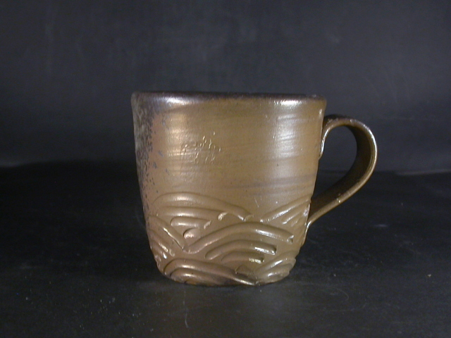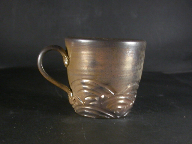 昭和26年岡山県生まれ。備前焼に惹かれ備前陶芸センター卒業後人間国宝山本陶秀・岡山県無形文化財山本雄一親子に師事。県展他入賞。陶秀の陶技・焼成を良く受け継ぎ陶秀譲りのろくろ技術と紐造り・面取等多彩な造形で人気があります。このカップは今回窯出しの最新作で少し重めですが使い道の多い大きさの作りに、焼けは良く焼き締まった地肌に鮮やかな金彩がたっぶりと掛かり黄・焦げ茶のゴマと相まって良い雰囲気の作品となっています。高さ約8.3センチ、径約9センチ、手までの幅約11.7センチ。栞付き。送料は地域別送料です。別注品を除く5,000円以上のお買上げで送料500円。 別注品を除く10,000円以上のお買上げで送料無料にさせていただきます。 ※離島にお住まいの方は別途ご連絡いたします。