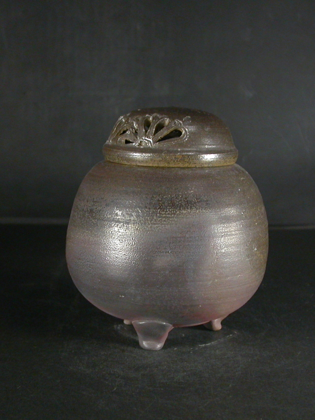 昭和26年岡山県生まれ。備前焼に惹かれ備前陶芸センター卒業後人間国宝山本陶秀・岡山県無形文化財山本雄一親子に師事。県展他入賞。陶秀の陶技・焼成を良く受け継ぎ陶秀譲りのろくろ技術と紐造り・面取等多彩な造形で人気があります。この香炉は今回窯出しの最新作で雰囲気のある作りに、焼けは良く焼き締まった地肌に黄・焦げ茶のゴマがたっぶりと掛かり良い雰囲気の作品となっています。高さ約12センチ、径約10.3センチ。栞付き。送料は地域別送料です。別注品を除く5,000円以上のお買上げで送料500円。 別注品を除く10,000円以上のお買上げで送料無料にさせていただきます。 ※離島にお住まいの方は別途ご連絡いたします。