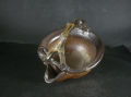 昭和26年岡山県生まれ。備前焼に惹かれ備前陶芸センター卒業後人間国宝山本陶秀・岡山県無形文化財山本雄一親子に師事。県展他入賞。陶秀の陶技・焼成を良く受け継ぎ陶秀譲りのろくろ技術と紐造り・面取等多彩な造形で人気があります。この酒注は今回窯出しの最新作で雰囲気のある作りに、焼けは良く焼き締まった地肌に黄・焦げ茶・焦げのゴマが掛かり良い雰囲気の作品となっています。高さ約11.5センチ、径約12センチ、口までの幅約14.5センチ。。栞付き。送料は地域別送料です。別注品を除く5,000円以上のお買上げで送料500円。 別注品を除く10,000円以上のお買上げで送料無料にさせていただきます。 ※離島にお住まいの方は別途ご連絡いたします。