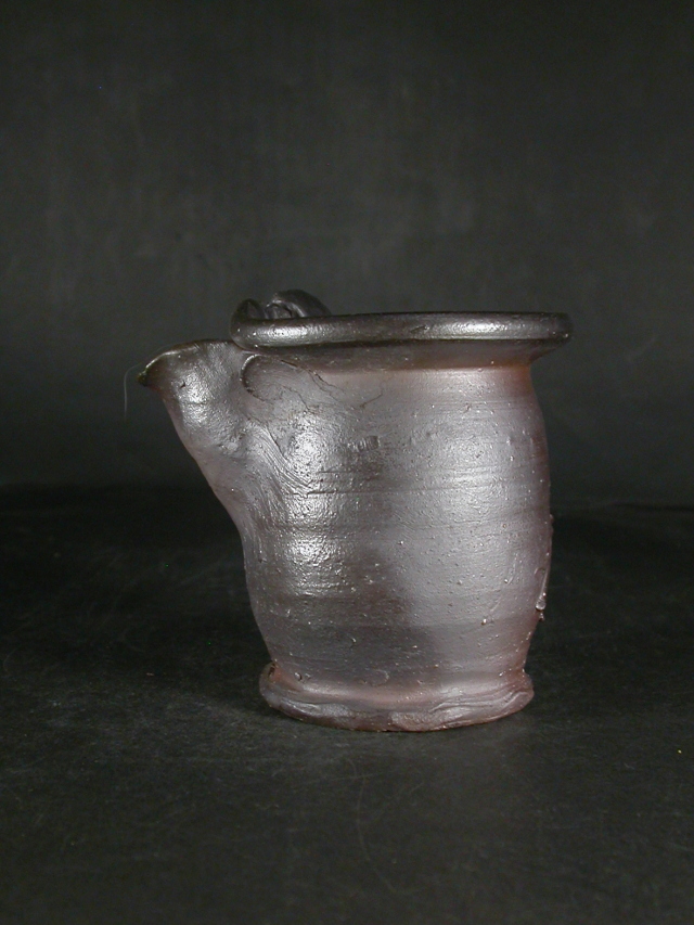 昭和26年岡山県生まれ。備前焼に惹かれ備前陶芸センター卒業後人間国宝山本陶秀・岡山県無形文化財山本雄一親子に師事。県展他入賞。陶秀の陶技・焼成を良く受け継ぎ陶秀譲りのろくろ技術と紐造り・面取等多彩な造形で人気があります。この酒注は今回窯出しの最新作で雰囲気のある作りに、焼けは良く焼き締まった地肌に焦げ茶のゴマが掛かり良い雰囲気の作品となっています。高さ約9.5センチ、径約8.5センチ、口までの幅約10センチ。栞付き。送料は地域別送料です。別注品を除く5,000円以上のお買上げで送料500円。 別注品を除く10,000円以上のお買上げで送料無料にさせていただきます。 ※離島にお住まいの方は別途ご連絡いたします。