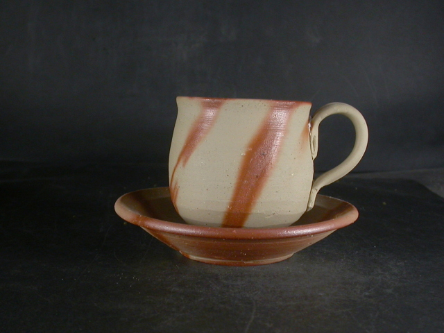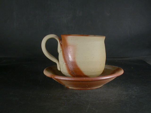 昭和26年岡山県生まれ。備前焼に惹かれ備前陶芸センター卒業後岡山県無形文化財山本雄一親子に師事。県展他入賞。陶秀の陶技・焼成を良く受け継ぎ陶秀譲りのろくろ技術と紐造り・面取等多彩な造形で人気があります。このカップは今回窯出しの最新作で端正な作りに、焼けは良く焼き締まった地肌に緋襷が掛かり良い雰囲気の作品となっています。高さ約7.2センチ、径約7.5センチ、手までの幅約10.5センチ。皿径約12.7センチ。栞付き。送料は地域別送料です。別注品を除く5,000円以上のお買上げで送料500円。 別注品を除く10,000円以上のお買上げで送料無料にさせていただきます。 ※離島にお住まいの方は別途ご連絡いたします。