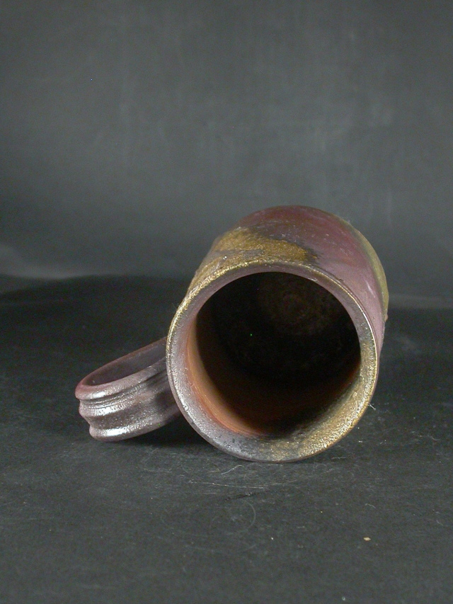 昭和26年岡山県生まれ。備前焼に惹かれ備前陶芸センター卒業後人間国宝山本陶秀・岡山県無形文化財山本雄一親子に師事。県展他入賞。陶秀の陶技・焼成を良く受け継ぎ陶秀譲りのろくろ技術と紐造り・面取等多彩な造形で人気があります。このカップは今回窯出しの最新作で重めですが使い道の多い大きさの作りに、焼けは良く焼き締まった地肌に桟切と黄・焦げ茶のゴマがたっぷりと掛かり良い雰囲気の作品となっています。高さ約11.3センチ、径約8.6センチ、手までの幅約12センチ。栞付き。送料は地域別送料です。別注品を除く5,000円以上のお買上げで送料500円。 別注品を除く10,000円以上のお買上げで送料無料にさせていただきます。 ※離島にお住まいの方は別途ご連絡いたします。