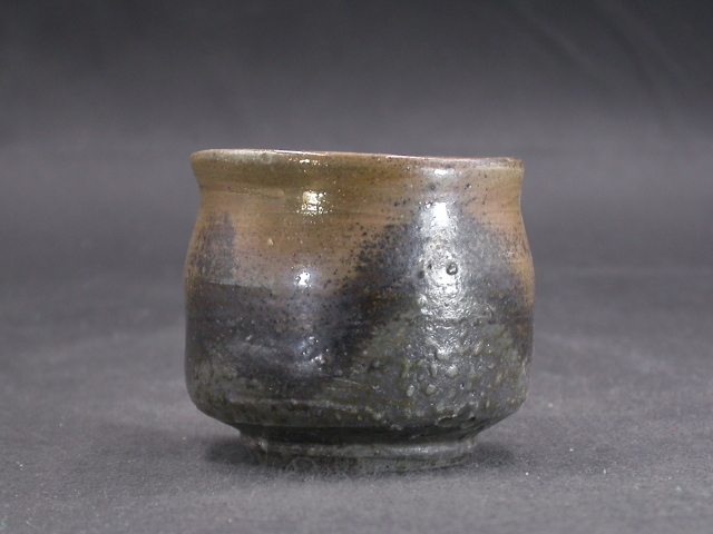 昭和26年岡山県生まれ。備前焼に惹かれ備前陶芸センター卒業後人間国宝山本陶秀・岡山県無形文化財山本雄一親子に師事。県展他入賞。陶秀の陶技・焼成を良く受け継ぎ陶秀譲りのろくろ技術と紐造り・面取等多彩な造形で人気があります。このぐい呑は今回窯出しの最新作で雰囲気のある作りに、焼けは良く焼き締まった地肌に鮮やかな金彩と青・焦げ茶・焦げのゴマがたっぶりと掛かり良い雰囲気の作品となっています。高さ約5.5センチ、径約6.5センチ。栞付き。 送料は地域別送料です。別注品を除く5,000円以上のお買上げで送料500円。 別注品を除く10,000円以上のお買上げで送料無料にさせていただきます。 ※離島にお住まいの方は別途ご連絡いたします。