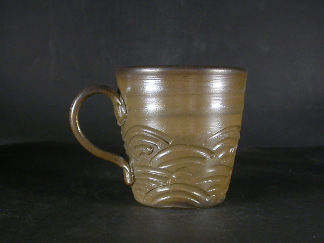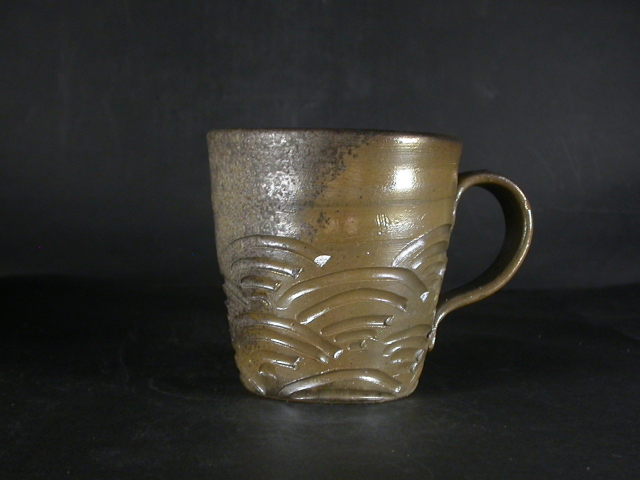 昭和26年岡山県生まれ。備前焼に惹かれ備前陶芸センター卒業後人間国宝山本陶秀・岡山県無形文化財山本雄一親子に師事。県展他入賞。陶秀の陶技・焼成を良く受け継ぎ陶秀譲りのろくろ技術と紐造り・面取等多彩な造形で人気があります。このカップは今回窯出しの最新作で少し重めですが使い道の多い大きさの作りに、焼けは良く焼き締まった地肌に鮮やかな金彩がたっぶりと黄・焦げ茶のゴマと相まって掛かり良い雰囲気の作品となっています。高さ約9センチ、径約9.2センチ、手までの幅約12センチ。栞付き。送料は地域別送料です。別注品を除く5,000円以上のお買上げで送料500円。 別注品を除く10,000円以上のお買上げで送料無料にさせていただきます。 ※離島にお住まいの方は別途ご連絡いたします。