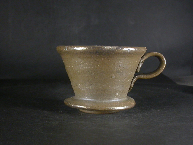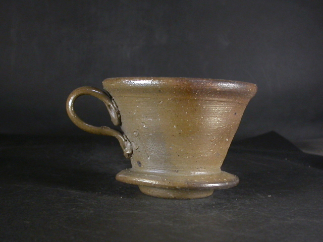 昭和26年岡山県生まれ。備前焼に惹かれ備前陶芸センター卒業後人間国宝山本陶秀・岡山県無形文化財山本雄一親子に師事。県展他入賞。陶秀の陶技・焼成を良く受け継ぎ陶秀譲りのろくろ技術と紐造り・面取等多彩な造形で人気があります。このコーヒードリッパーは今回窯出しの最新作で雰囲気のある作りに、焼けは良く焼き締まった地肌に鮮やかな金彩と黄・焦げ茶のゴマがたっぷりと掛かり良い雰囲気の作品となっています。高さ約7センチ、径約9.7センチ、手までの幅約12センチ。栞付き。送料は地域別送料です。別注品を除く5,000円以上のお買上げで送料500円。 別注品を除く10,000円以上のお買上げで送料無料にさせていただきます。 ※離島にお住まいの方は別途ご連絡いたします。