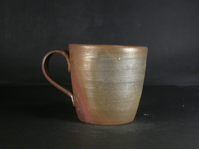 昭和26年岡山県生まれ。備前焼に惹かれ備前陶芸センター卒業後人間国宝山本陶秀・岡山県無形文化財山本雄一親子に師事。県展他入賞。陶秀の陶技・焼成を良く受け継ぎ陶秀譲りのろくろ技術と紐造り・面取等多彩な造形で人気があります。このカップは今回窯出しの最新作で使い道の多い大きさの作りに、焼けは還元で青から赤茶に良く焼き締まった地肌に鮮やかな金彩が掛かり良い雰囲気の作品となっています。高さ約8.7センチ、径約9センチ、手までの幅約12センチ。栞付き。送料は地域別送料です。別注品を除く5,000円以上のお買上げで送料500円。 別注品を除く10,000円以上のお買上げで送料無料にさせていただきます。 ※離島にお住まいの方は別途ご連絡いたします。