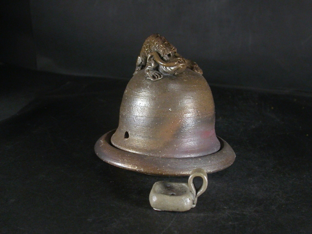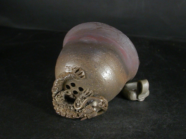 昭和26年岡山県生まれ。備前焼に惹かれ備前陶芸センター卒業後人間国宝山本陶秀・岡山県無形文化財山本雄一親子に師事。県展他入賞。陶秀の陶技・焼成を良く受け継ぎ陶秀譲りのろくろ技術と紐造り・面取等多彩な造形で人気があります。この線香立・香炉は今回窯出しの最新作で龍飾りを付けた雰囲気のある作りに、焼けは還元気味に良く焼き締まった地肌に黄・焦げ茶のゴマが掛かり良い雰囲気の作品となっています。高さ約11センチ、径約11センチ。栞付き。送料は地域別送料です。別注品を除く5,000円以上のお買上げで送料500円。 別注品を除く10,000円以上のお買上げで送料無料にさせていただきます。 ※離島にお住まいの方は別途ご連絡いたします。