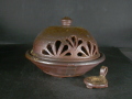 昭和26年岡山県生まれ。備前焼に惹かれ備前陶芸センター卒業後人間国宝山本陶秀・岡山県無形文化財山本雄一親子に師事。県展他入賞。陶秀の陶技・焼成を良く受け継ぎ陶秀譲りのろくろ技術と紐造り・面取等多彩な造形で人気があります。この線香立・香炉は今回窯出しの最新作で蓋物としても良く使い道の多い大きの作りに、焼けは良く焼き締まった地肌に黄・焦げ茶のゴマが掛かり良い雰囲気の作品となっています。高さ約11.5センチ、径約16センチ。栞付き。送料は地域別送料です。別注品を除く5,000円以上のお買上げで送料500円。 別注品を除く10,000円以上のお買上げで送料無料にさせていただきます。 ※離島にお住まいの方は別途ご連絡いたします。