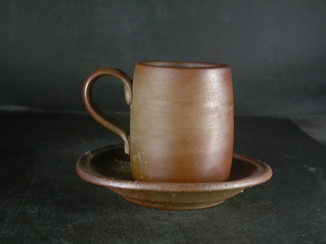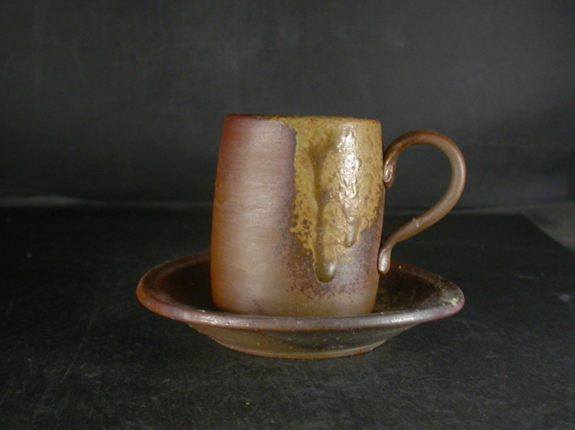 昭和26年岡山県生まれ。備前焼に惹かれ備前陶芸センター卒業後人間国宝山本陶秀・岡山県無形文化財山本雄一親子に師事。県展他入賞。陶秀の陶技・焼成を良く受け継ぎ陶秀譲りのろくろ技術と紐造り・面取等多彩な造形で人気があります。このコーヒーカップは今回窯出しの最新作で雰囲気のある作りに、焼けは良く焼き締まった地肌に黄・焦げ茶のゴマが掛り良い雰囲気の作品となっています。カップ高さ約8センチ、径約7センチ、手までの幅約10センチ。皿径約12.7センチ。栞付き。送料は地域別送料です。別注品を除く5,000円以上のお買上げで送料500円。 別注品を除く10,000円以上のお買上げで送料無料にさせていただきます。 ※離島にお住まいの方は別途ご連絡いたします。