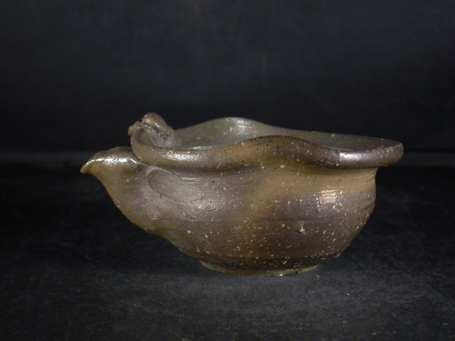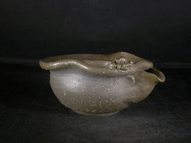 昭和26年岡山県生まれ。備前焼に惹かれ備前陶芸センター卒業後人間国宝山本陶秀・岡山県無形文化財山本雄一親子に師事。県展他入賞。陶秀の陶技・焼成を良く受け継ぎ陶秀譲りのろくろ技術と紐造り・面取等多彩な造形で人気があります。この湯冷は今回窯出しの最新作で雰囲気のある作りに、焼けは還元で青く良く焼き締まった地肌に金彩と黄・焦げ茶のゴマが掛り良い雰囲気の作品となっています。高さ約6センチ、径約10センチ、口までの幅約12.5センチ。栞付き。 送料は地域別送料です。別注品を除く5,000円以上のお買上げで送料500円。 別注品を除く10,000円以上のお買上げで送料無料にさせていただきます。 ※離島にお住まいの方は別途ご連絡いたします。