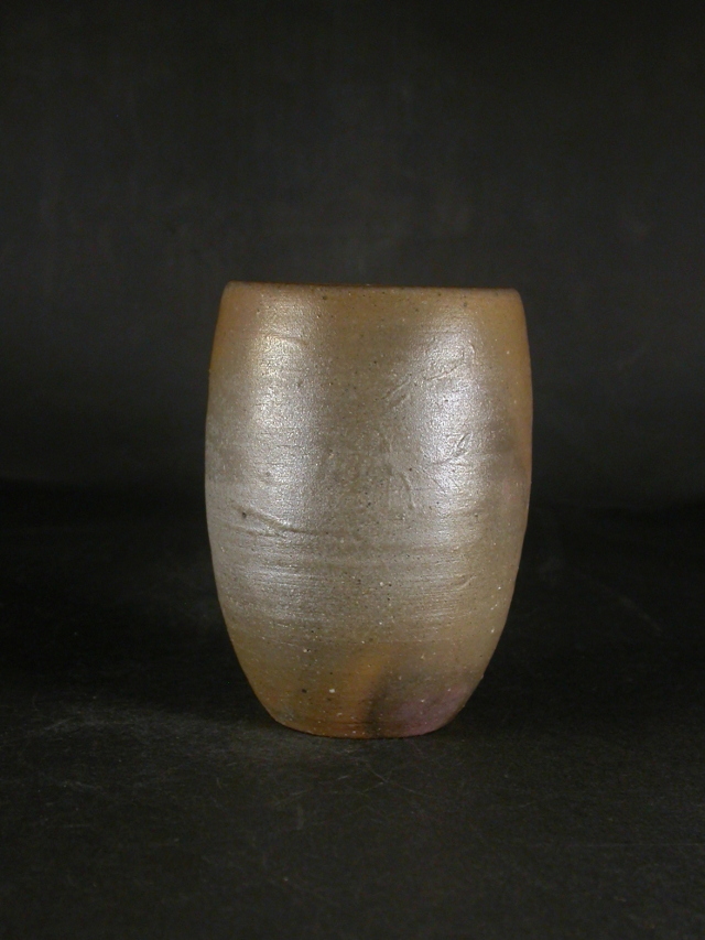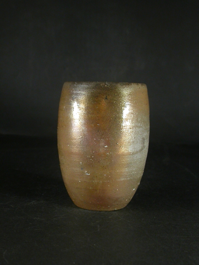 昭和26年岡山県生まれ。備前焼に惹かれ備前陶芸センター卒業後人間国宝山本陶秀・岡山県無形文化財山本雄一親子に師事。県展他入賞。陶秀の陶技・焼成を良く受け継ぎ陶秀譲りのろくろ技術と紐造り・面取等多彩な造形で人気があります。このグラスは今回窯出しの最新作でビール他使い途の多い大きさの作りに、焼けは還元気味に良く焼き締まった地肌に鮮やかな金彩がたっぶりと掛かり良い雰囲気の作品となっています。高さ約10センチ、径約7.2センチ。栞付き。送料は地域別送料です。別注品を除く5,000円以上のお買上げで送料500円。 別注品を除く10,000円以上のお買上げで送料無料にさせていただきます。 ※離島にお住まいの方は別途ご連絡いたします。