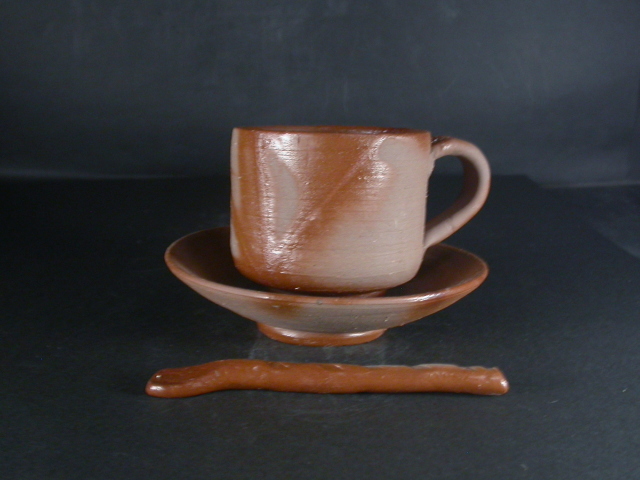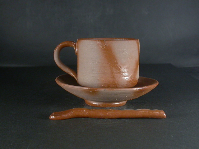 昭和23年滋賀県生まれ。中部大学卒業後洋食器メーカーに入社。その後備前焼に魅せられ備前焼作家三村陶伯に師事。昭和54年窯を築いて独立。県展他入賞多数。使いやすい食器を中心に造り人気があります。このカップは使い道の多い大きさで雰囲気のある作りに、焼けは良く焼き締まった地肌に緋襷が掛かり良い雰囲気の作品だと思います。カップ高さ約7.2センチ、径約8センチ、手までの幅約11センチ。皿径約13センチ。栞付き。送料は地域別送料です。別注品を除く5,000円以上のお買上げで送料500円。 別注品を除く10,000円以上のお買上げで送料無料にさせていただきます。 ※離島にお住まいの方は別途ご連絡いたします。