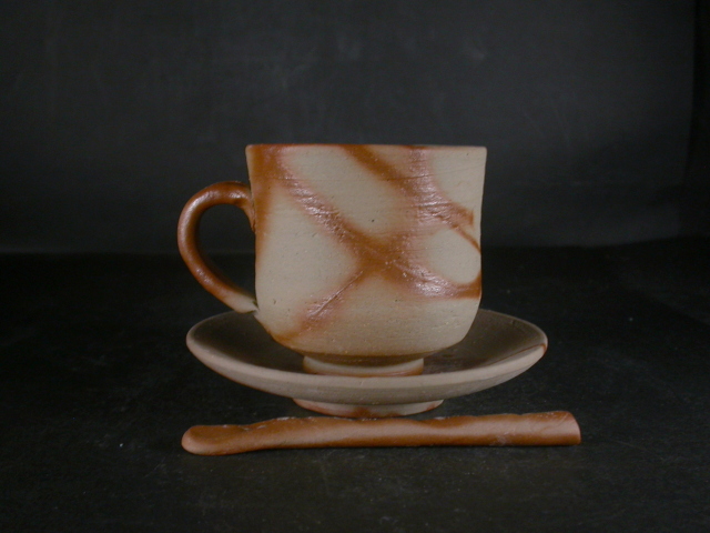 昭和23年滋賀県生まれ。中部大学卒業後洋食器メーカーに入社。その後備前焼に魅せられ備前焼作家三村陶伯に師事。昭和54年窯を築いて独立。県展他入賞多数。使いやすい食器を中心に造り人気があります。このカップは使い道の多い大きさで雰囲気のある作りに、焼けは良く焼き締まった地肌に緋襷が掛り良い雰囲気の作品だと思います。カップ高さ約8センチ、径約8センチ、手までの幅約10.5センチ。皿径約12.3センチ。栞付き。送料は地域別送料です。別注品を除く5,000円以上のお買上げで送料500円。 別注品を除く10,000円以上のお買上げで送料無料にさせていただきます。 ※離島にお住まいの方は別途ご連絡いたします。