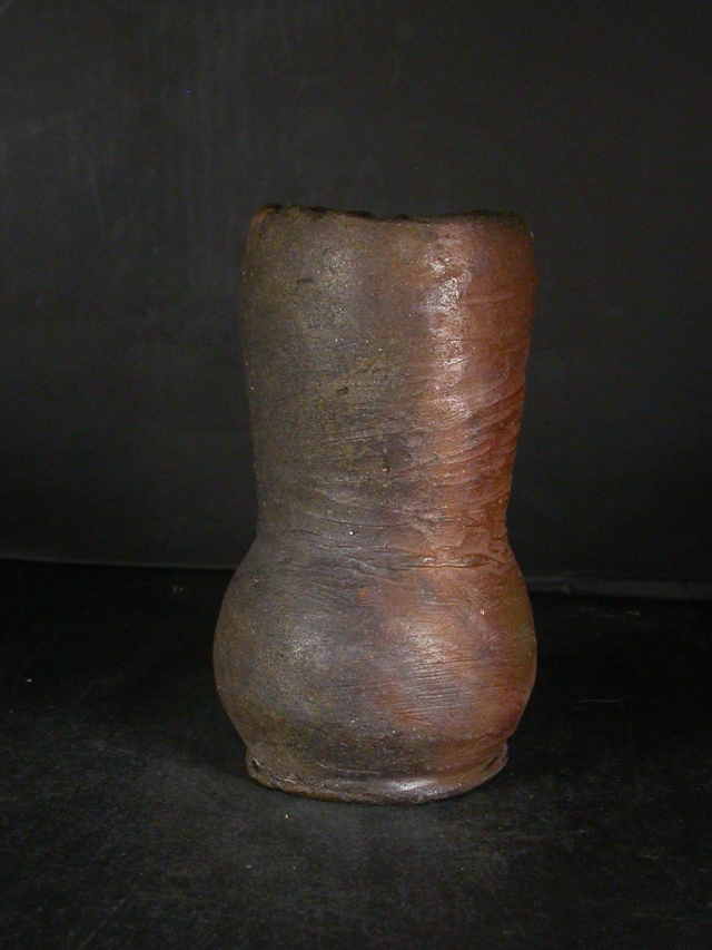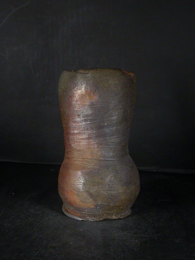 大正15年備前市生まれ。粘りけの少ない山の粘土を使い従兄弟の備前焼作家原田拾六と共に古備前と見間違うばかりの土味の良い作品を作り人気がありました。この花入は紐づくりで造られた雰囲気の有る作りに、焼けは緋色から赤茶に良く焼き締まった土味の良い地肌に黄・青・焦げ茶・焦げのゴマがたっぷりと掛かり良い雰囲気の作品となっています。陶印漏れです。高さ約17.5センチ、径約10.5センチ。栞付き。送料は地域別送料です。別注品を除く5,000円以上のお買上げで送料500円。 別注品を除く10,000円以上のお買上げで送料無料にさせていただきます。 ※離島にお住まいの方は別途ご連絡いたします。