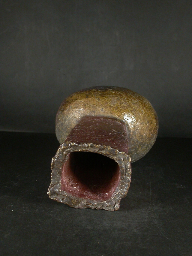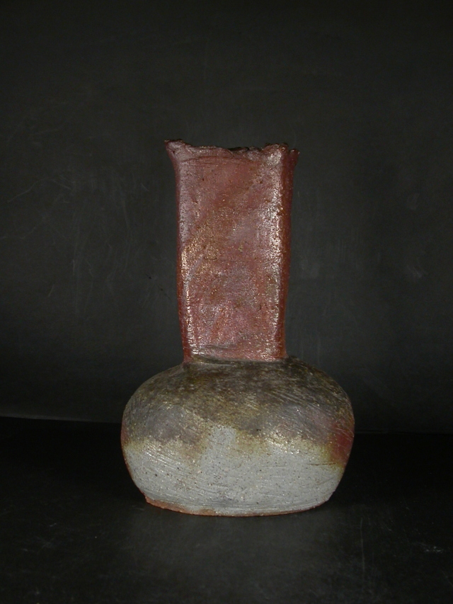 大正15年備前市生まれ。粘りけの少ない山の粘土を使い従兄弟の備前焼作家原田拾六と共に古備前と見間違うばかりの土味の良い作品を作り人気がありました。この花入は紐づくりで造られた雰囲気のある作りに、焼けは良く焼き締まった古備前を彷彿させる土味の良い地肌に自然桟切と黄・焦げ茶のゴマがたっぷりと掛かり良い雰囲気の作品となっています。高さ約21.5センチ、径約11から14.3センチ。栞付き。送料は地域別送料です。別注品を除く5,000円以上のお買上げで送料500円。 別注品を除く10,000円以上のお買上げで送料無料にさせていただきます。 ※離島にお住まいの方は別途ご連絡いたします。