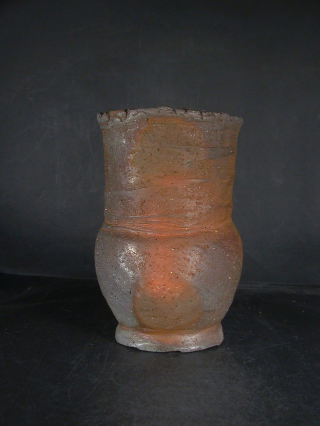 大正15年備前市生まれ。粘りけの少ない山の粘土を使い従兄弟の備前焼作家原田拾六と共に古備前と見間違うばかりの土味の良い作品を作り人気がありました。この花入は紐造りで造られた雰囲気のある作りに、焼けは鮮やかな緋色から赤茶に良く焼き締まった地肌に黄・焦げ茶・焦げのゴマがたっぶりと掛かり良い雰囲気の作品となっています。高さ約19.7センチ、径約13.5センチ。栞付き。送料は地域別送料です。別注品を除く5,000円以上のお買上げで送料500円。 別注品を除く10,000円以上のお買上げで送料無料にさせていただきます。 ※離島にお住まいの方は別途ご連絡いたします。