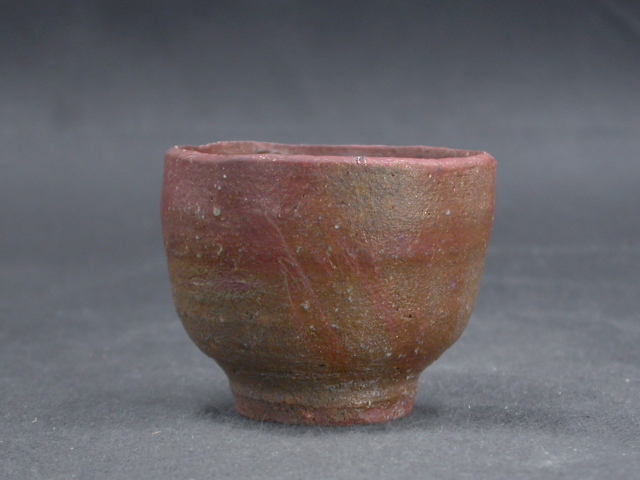 大正15年備前市生まれ。粘りけの少ない山の粘土を使い従兄弟の備前焼作家原田拾六と共に古備前と見間違うばかりの土味の良い作品を作り人気がありました。このぐい吞は雰囲気のある作りに、焼けは良く焼き締まった土味の良い地肌に緋襷が掛かり良い雰囲気の作品となっています。高さ約5センチ、径約6.7センチ。栞付き。送料は地域別送料です。別注品を除く5,000円以上のお買上げで送料500円。 別注品を除く10,000円以上のお買上げで送料無料にさせていただきます。 ※離島にお住まいの方は別途ご連絡いたします。