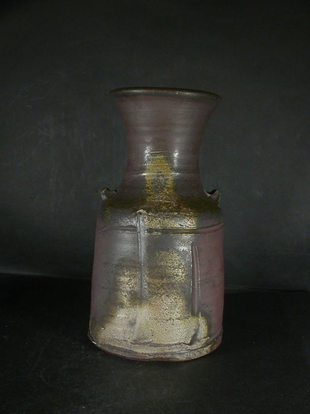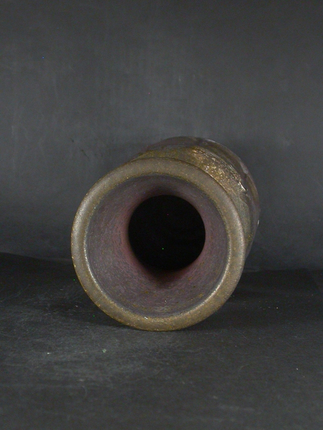 昭和6年熊本県生まれ。京都で修行後備前陶芸センター指導員・所長に招かれる。昭和48年窯を築いて独立。岡山県無形文化財。金重陶陽賞他受賞歴多数。日本工芸会正会員。この花入は前作ですが雰囲気のある作りに、焼けは良く焼き締まった地肌に桟切りと黄・焦げ茶のゴマが掛り良い雰囲気の作品となっています。共箱に自然の焼けが有ります。高さ約23.5センチ、径約13.5センチ。共箱・栞付き。配送料送料は地域別送料です。別注品を除く5,000円以上のお買上げで送料500円。 別注品を除く10,000円以上のお買上げで送料無料にさせていただきます。 ※離島にお住まいの方は別途ご連絡いたします。