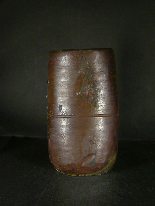 昭和9年備前市生まれ。岡山県無形文化財伊勢崎陽山の長男で人間国宝伊勢崎淳の兄。幼少より父を手伝い陶技を学ぶ。金重陶陽賞他受賞歴多数。岡山県無形文化財。この花入は雰囲気のある作りに、焼けは窯の棚に転がして焼かれ良く焼き締まった地肌に黄・焦げ茶のゴマがたっぷりと掛かり玉垂れと相まって良い雰囲気の作品となっています。引っ付き痕が有ります。少し座りが悪いです。高さ約22センチ、径約12.5から13センチ。送料は地域別送料です。別注品を除く5,000円以上のお買上げで送料500円。 別注品を除く10,000円以上のお買上げで送料無料にさせていただきます。 ※離島にお住まいの方は別途ご連絡いたします。