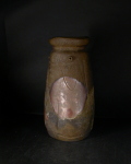 昭和6年熊本県生まれ。京都で修行後備前陶芸センター指導員・所長に招かれる。昭和48年窯を築いて独立。岡山県無形文化財。金重陶陽賞他受賞歴多数。日本工芸会正会員。この花入は前作ですが雰囲気のある作りに、焼けは良く焼き締まった地肌に黄・青・焦げ茶のゴマがたっぷりと掛かり良い雰囲気の作品となっています。抜けの下部に引っ付き痕の様に見える所が有りますがゴマです。共箱に自然の焼けが有ります。高さ26センチ、径約13.3センチ。共箱・栞付き。配送料送料は地域別送料です。別注品を除く5,000円以上のお買上げで送料500円。 別注品を除く10,000円以上のお買上げで送料無料にさせていただきます。 ※離島にお住まいの方は別途ご連絡いたします。