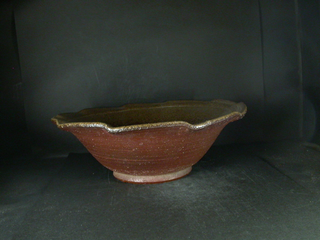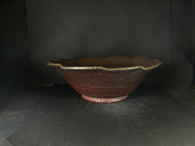 昭和31年東京都生まれ。玉川大学陶芸科卒業後備前市無形文化財榊原清人に師事。平成9年窯を築いて独立。日本伝統工芸展他入賞多数。日本工芸会正会員。この特大鉢は水盤としても良い作りに、焼けは良く焼き締まった地肌に黄・焦げ茶のゴマと緋襷が掛かり良い雰囲気の作品となっています。内面底に軽い引っ付き痕が有ります。高さ約11.5センチ、径約34センチ。 送料は地域別送料です。 別注品を除く5,000円以上のお買上げで送料500円。 別注品を除く10,000円以上のお買上げで送料無料にさせていただきます。 ※離島にお住まいの方は別途ご連絡いたします。