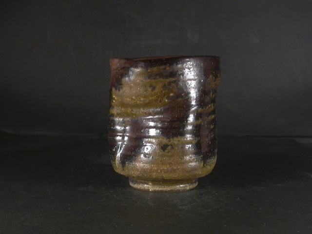 昭和25年愛媛県生まれ。砥部焼の修業後備前焼を独自に学び窯を築いて独立。茶の湯造形展入賞。食器類を中心に多彩な作品を作ります。この湯吞は大振りで塗土をした雰囲気の有る作りに、焼けは良く焼き締まった地肌に黄・焦げ茶のゴマが掛かり良い雰囲気の作品となっています。高さ約10.7センチ、径約8.7から9.5センチ。栞付き。送料は地域別送料です。別注品を除く5,000円以上のお買上げで送料500円。 別注品を除く10,000円以上のお買上げで送料無料にさせていただきます。 ※離島にお住まいの方は別途ご連絡いたします。