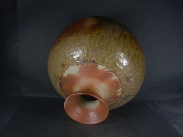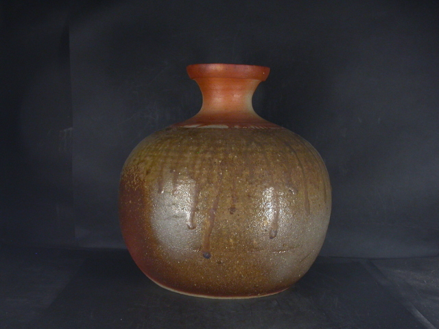昭和35年備前市生まれ。昭和55年から岡山県無形文化財森陶岳に師事。平成4年20メートルの大きな穴窯を築いて独立。茶の湯造形展他入賞多数。大皿・大壺など大振りな物を多く作ります。備前焼は遠赤外線効果で焼酎・日本酒・水がまろやかで美味しくなると定評があります。この大蕪徳利はかなり大振りで雰囲気のある作りに、焼けは良く焼き締まった地肌に緋襷と黄・青・焦げ茶のゴマがたっぷりと掛かり豪快な玉垂れと相まって良い雰囲気の作品となっています。共箱に少し自然の焼けが有ります。高さ約26.5センチ、径約26センチ。容量約7200㏄。共箱・共布・栞付き。送料は地域別送料です。別注品を除く5,000円以上のお買上げで送料500円。 別注品を除く10,000円以上のお買上げで送料無料にさせていただきます。 ※離島にお住まいの方は別途ご連絡いたします。